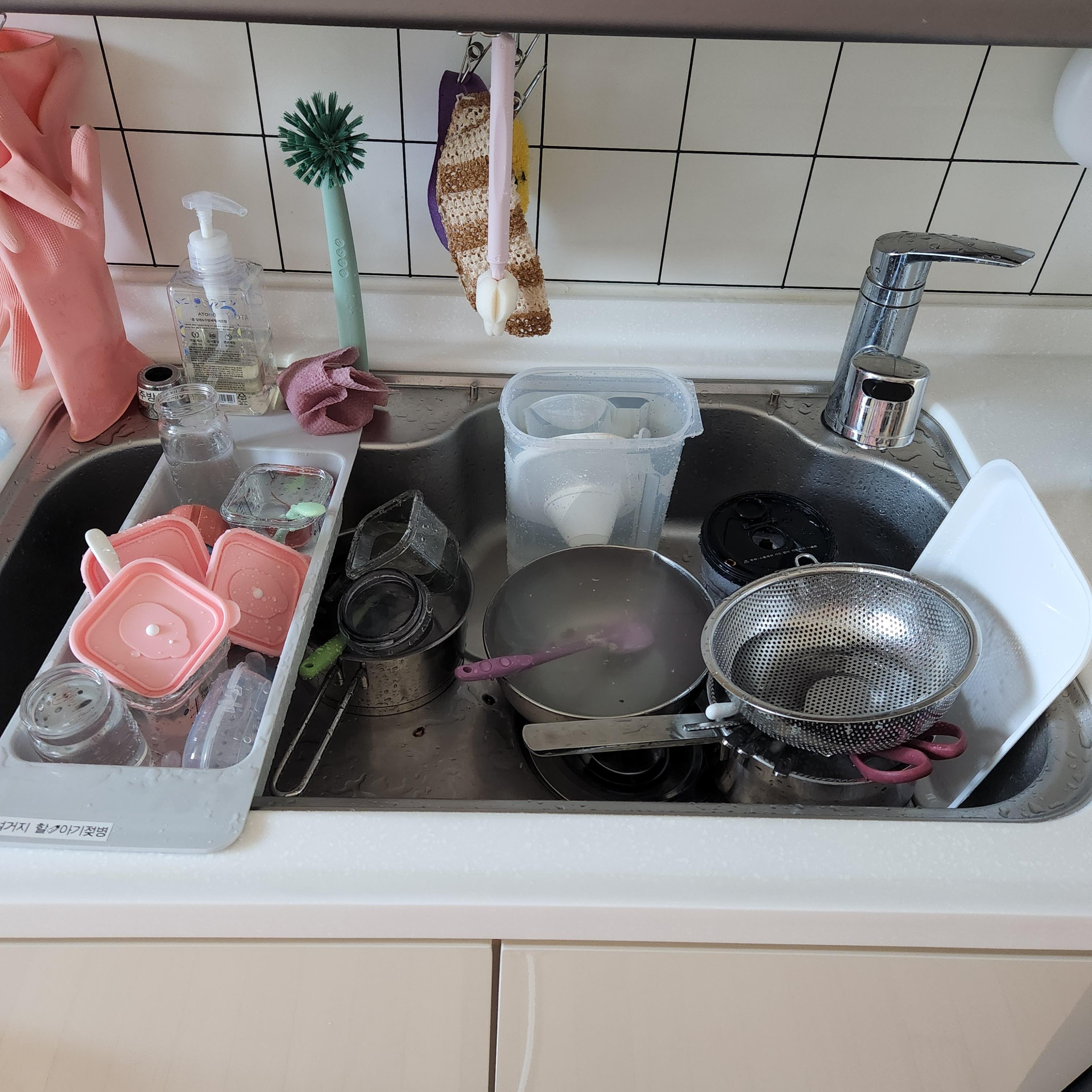 싱크대를 보니 설거지옥이 기다리고 있다.