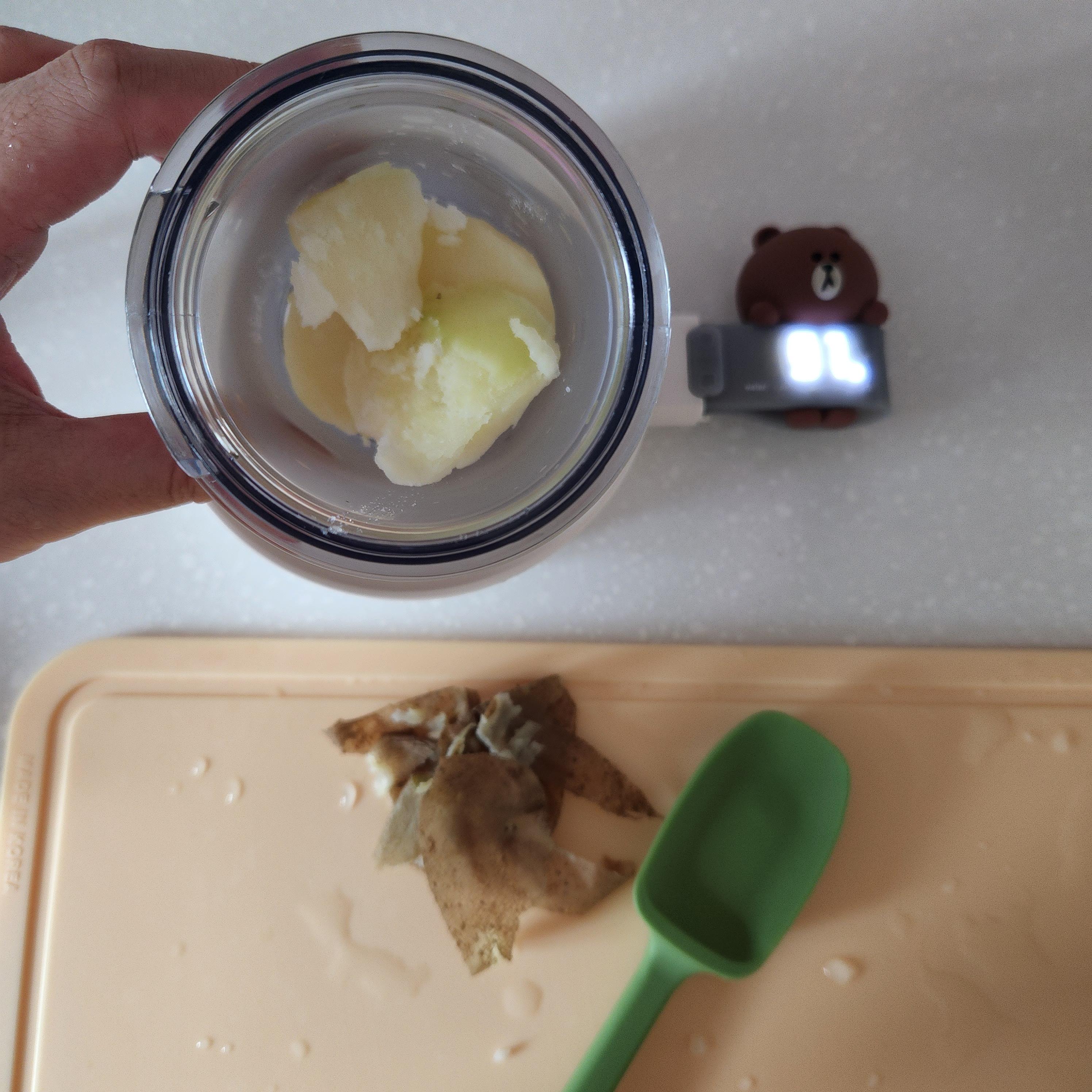 부드러운 감자라 잘 으깨졌는데 너무 되직할까봐 분유물을 조금 넣어줬다.