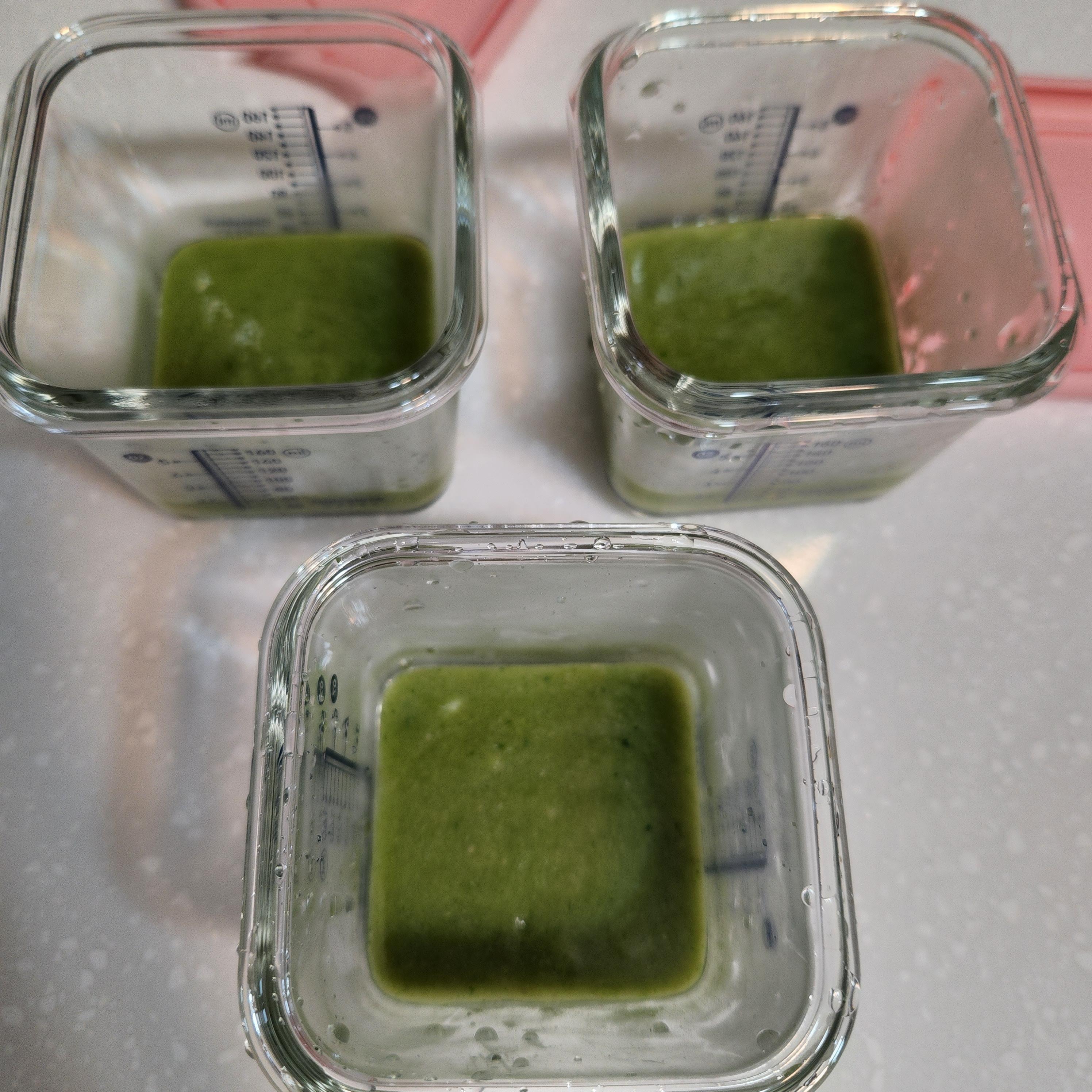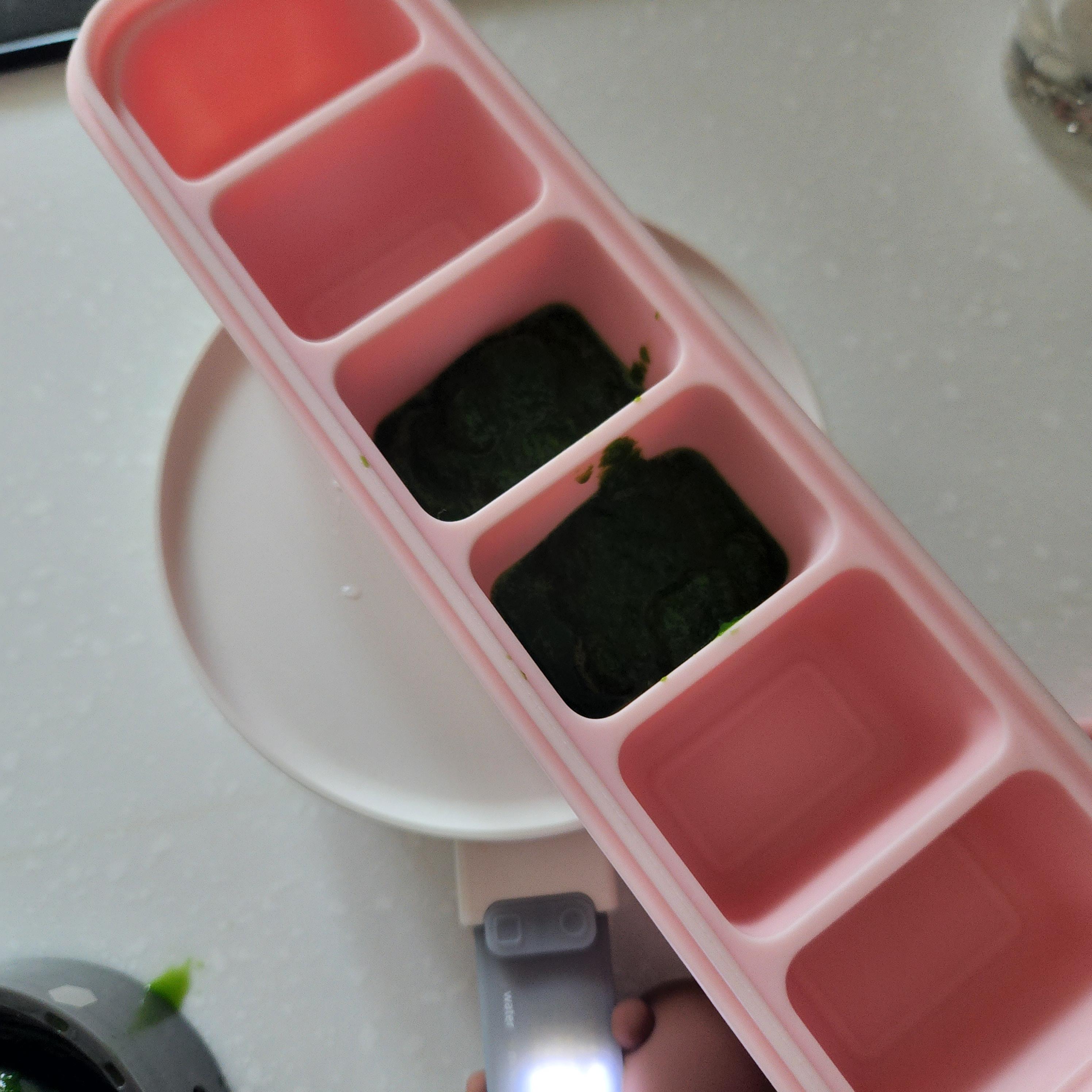 3일치 이유식 만드는데 필요한 20그램 정도만 남기고 나머지는 큐브틀에 넣어 얼려주었다!