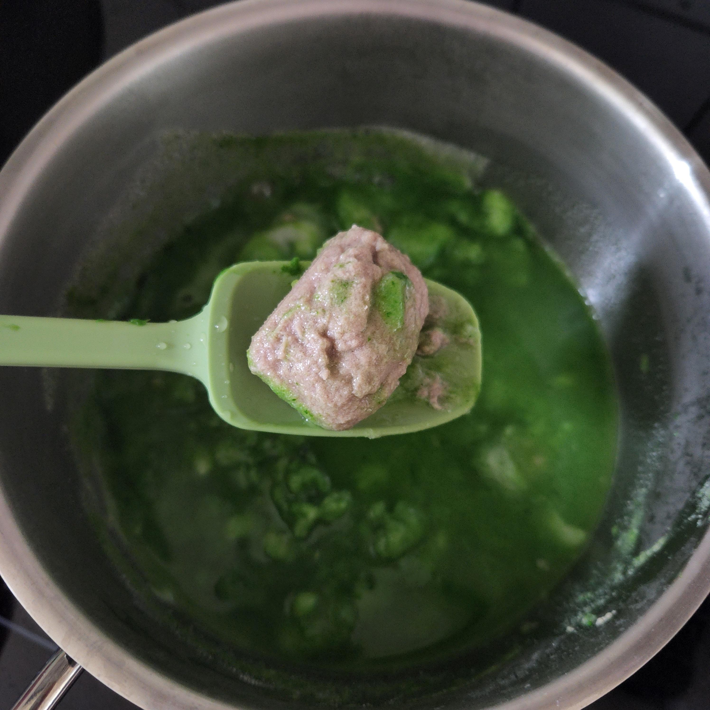 쌀가루 섞은 물과 갈아 놓은 청경채,