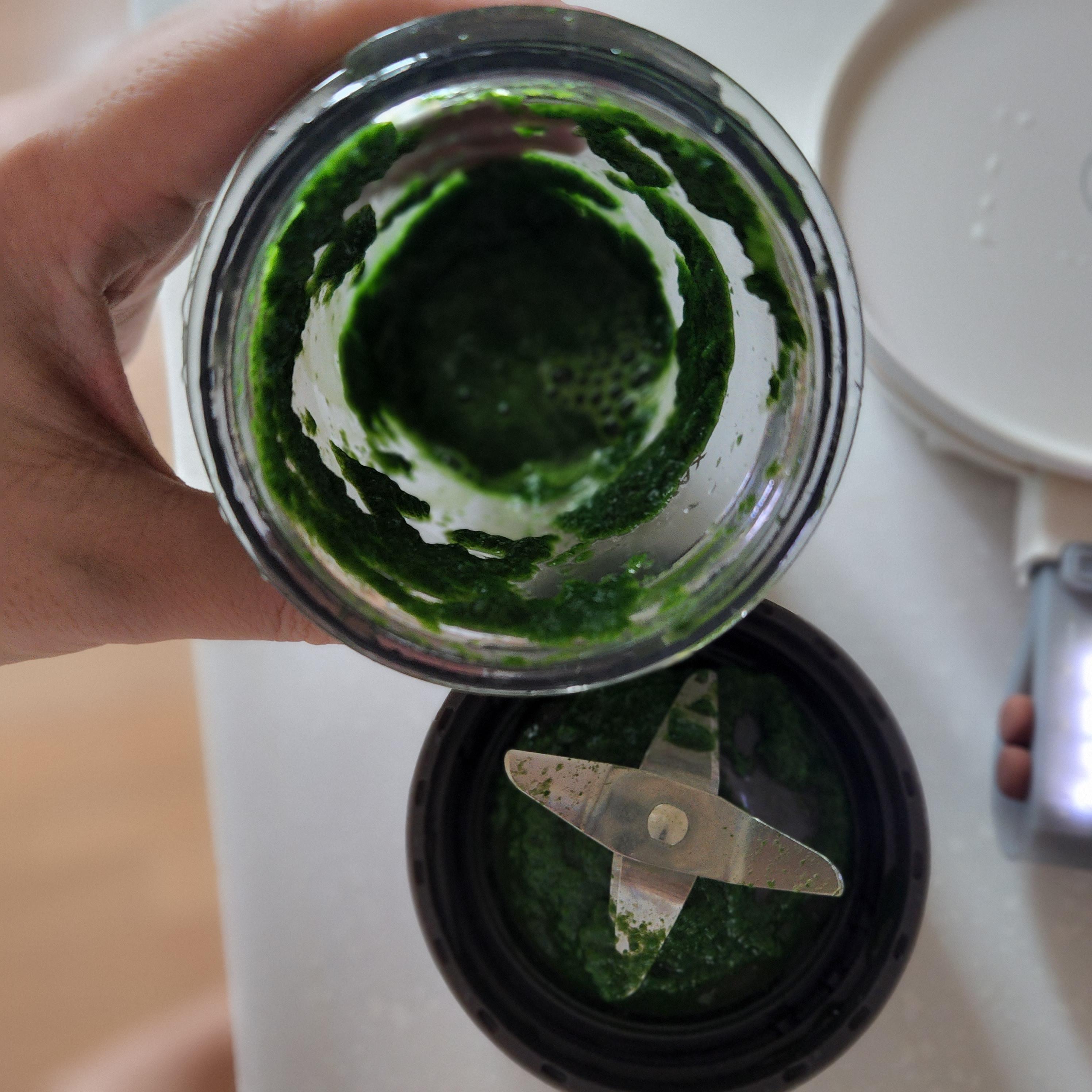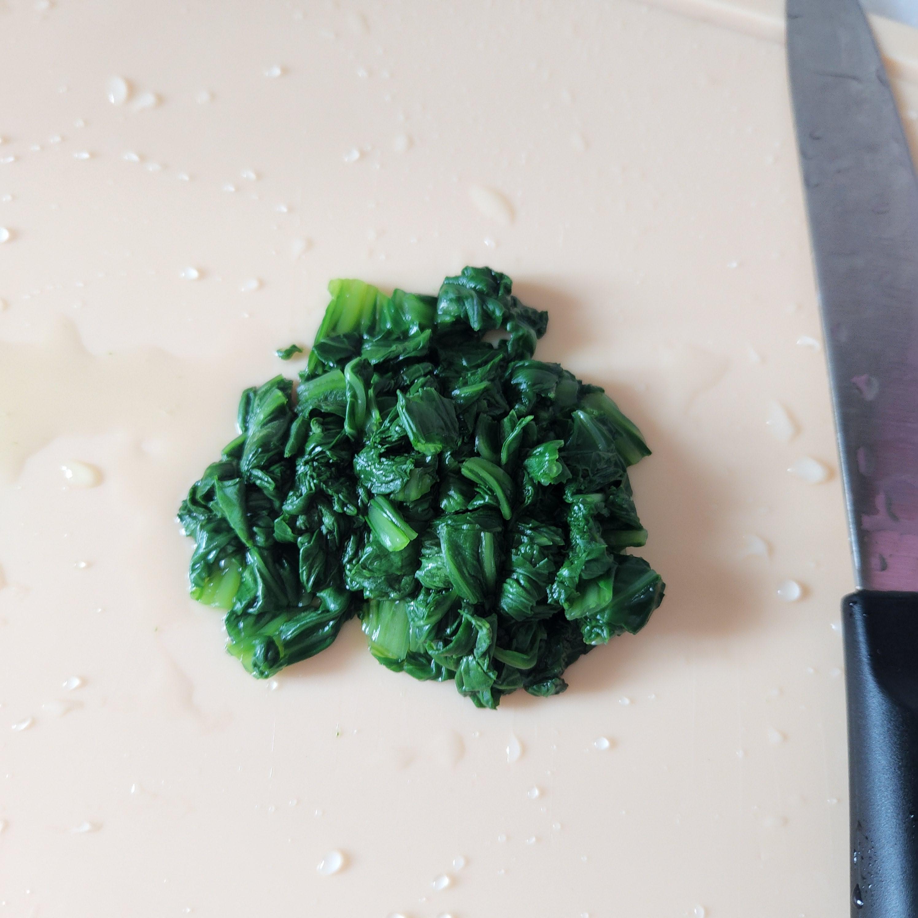 3. 데친 청경채 잘게 다진 후 믹서기로 갈아주기