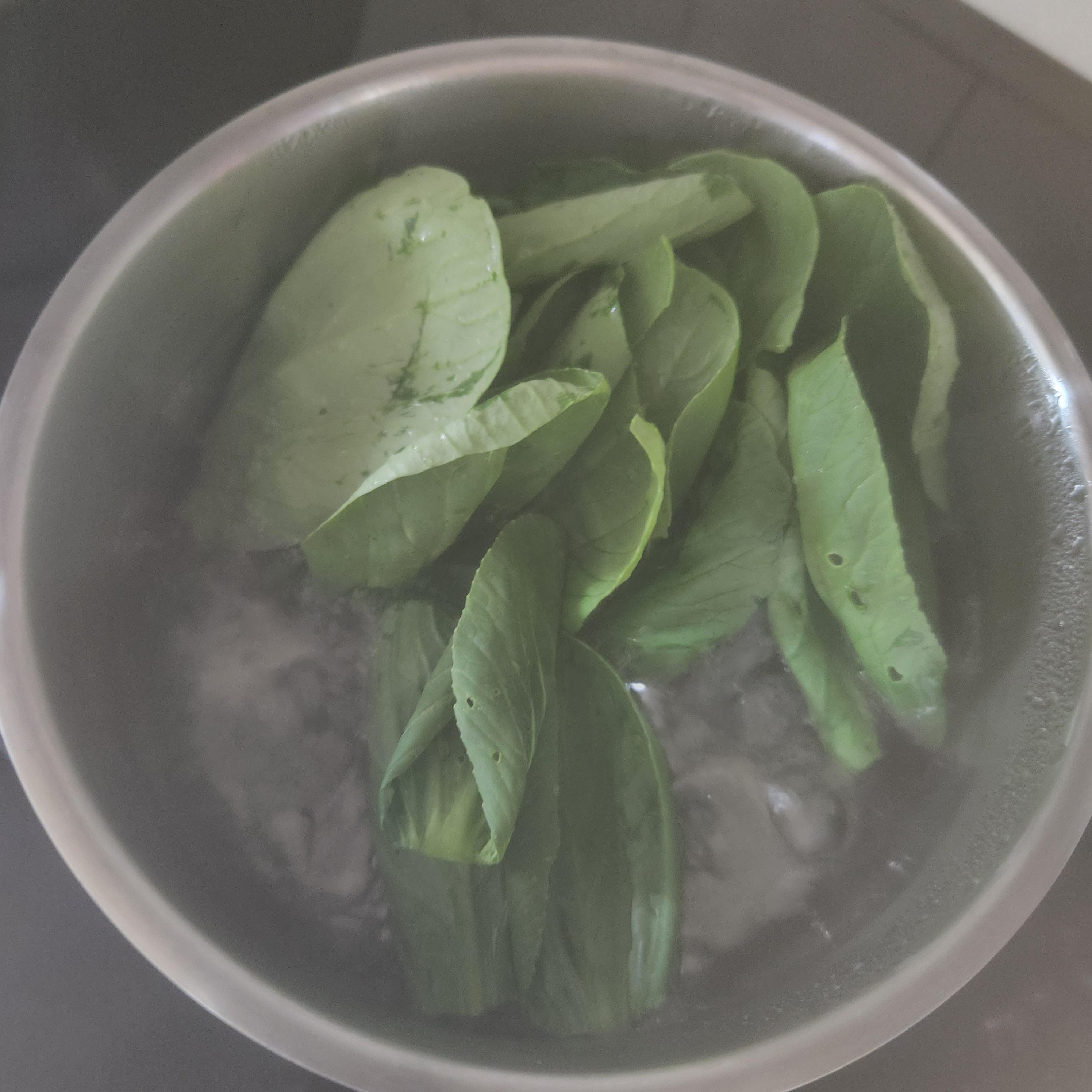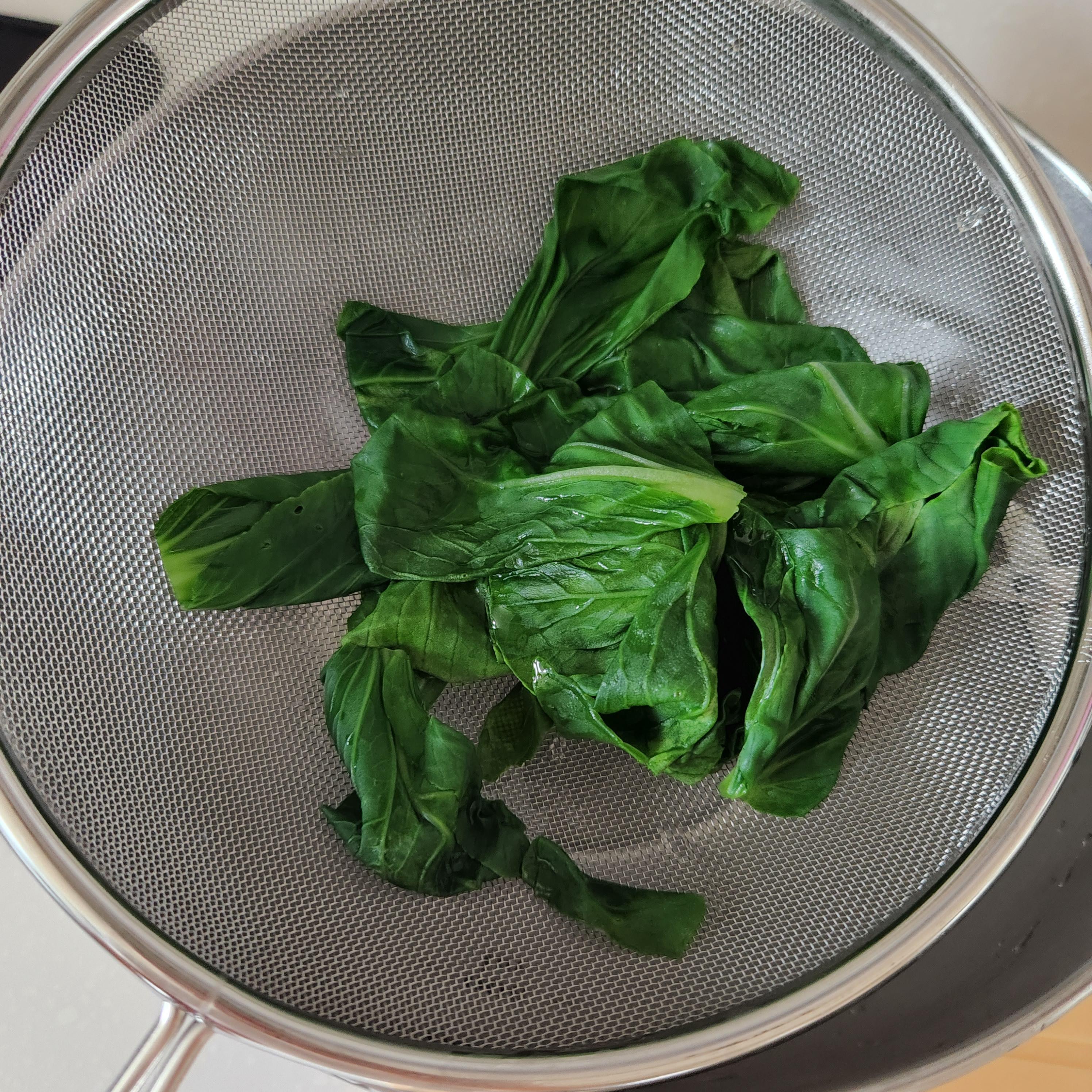 데친 청경채는 찬물샤워를 하여 식혀준다