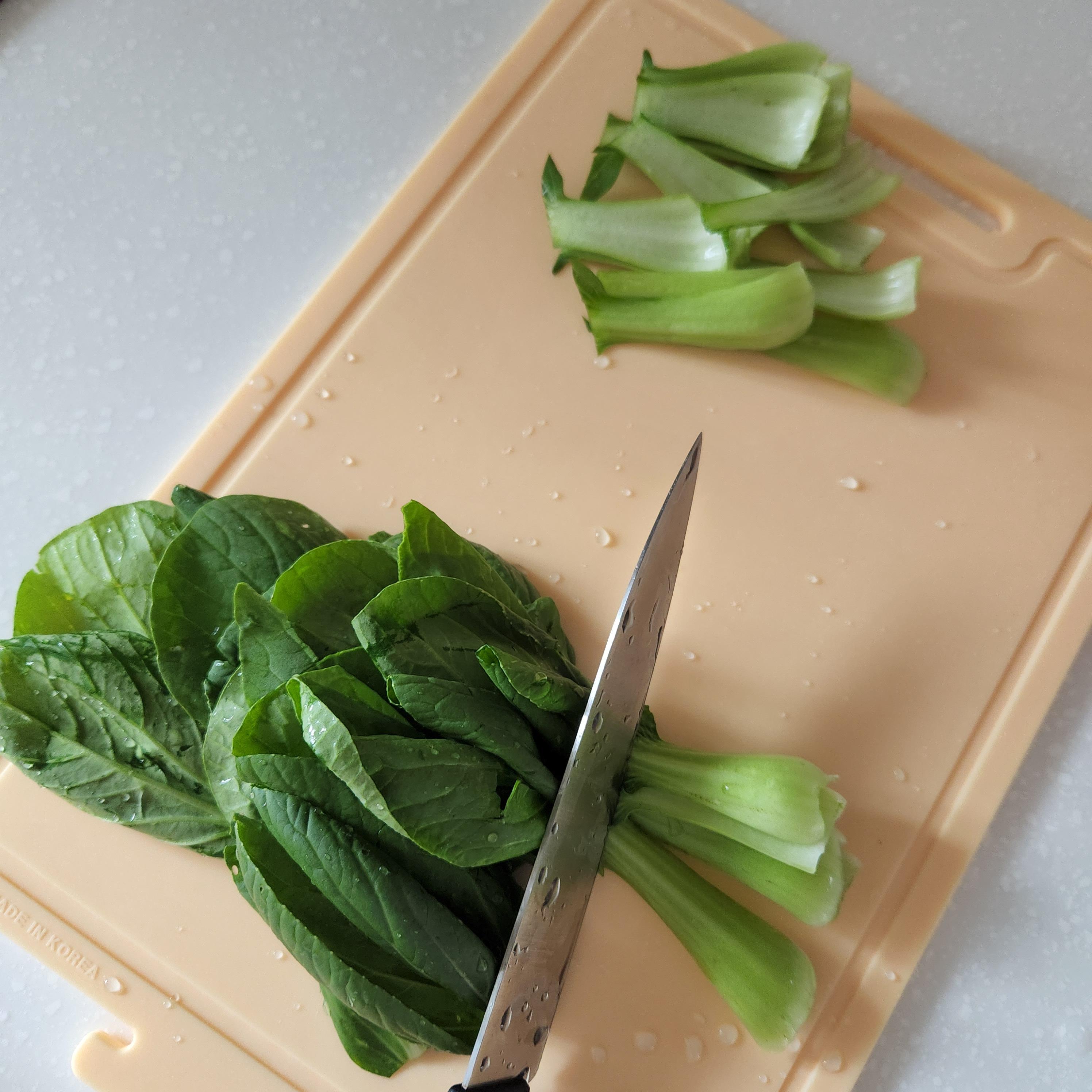 씻은 청경채는 도마위에 올려
