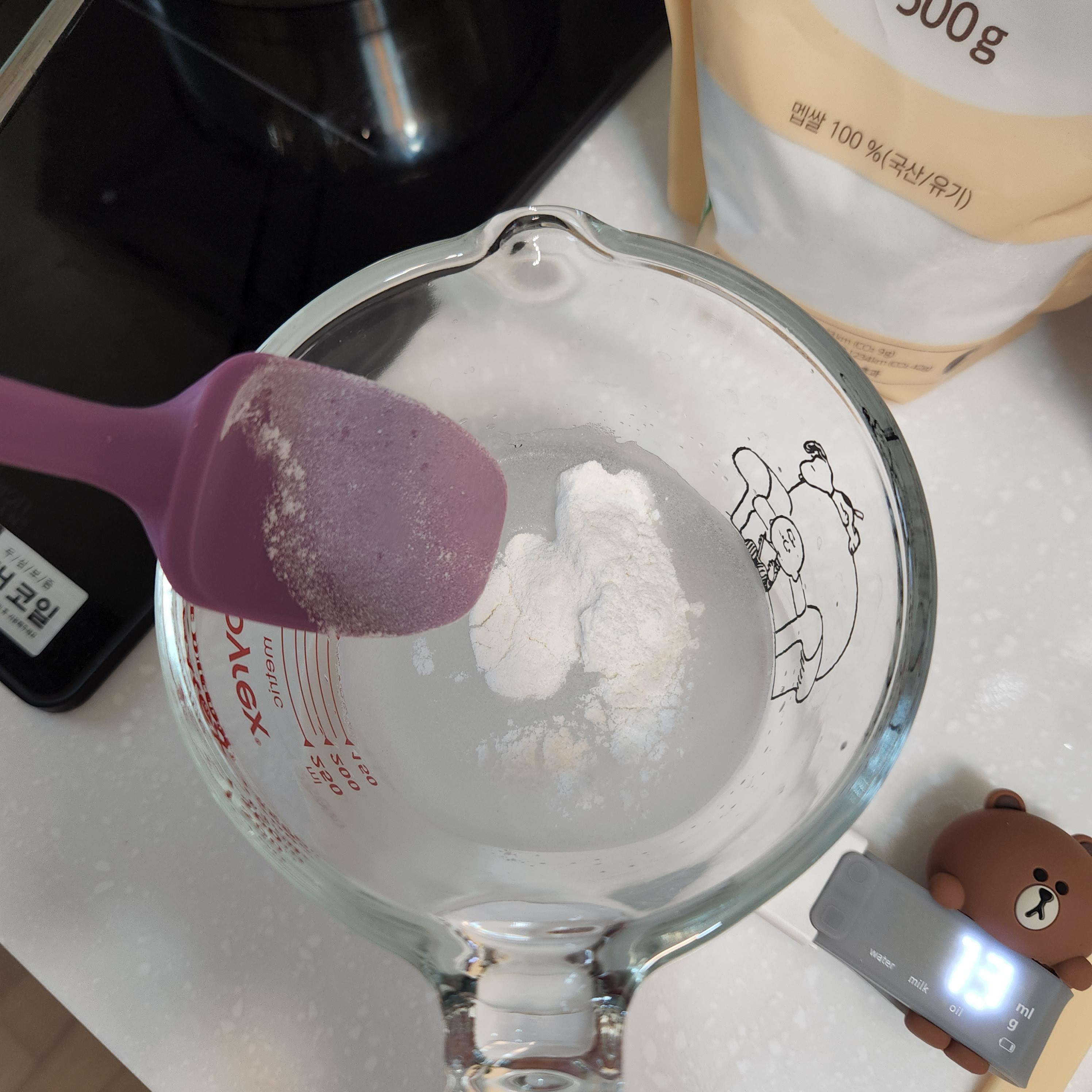 3. 쌀가루 풀고 오트밀 갈기
