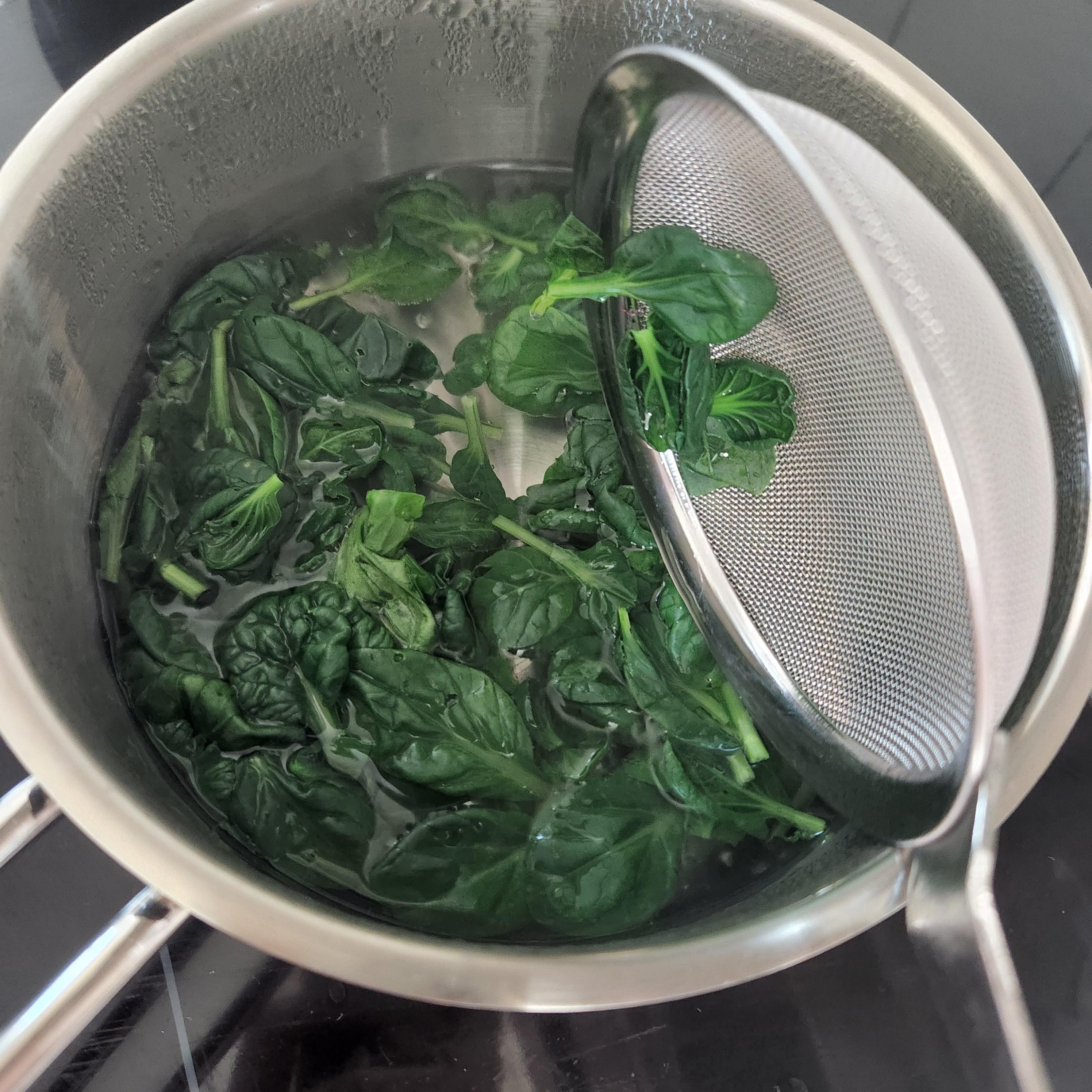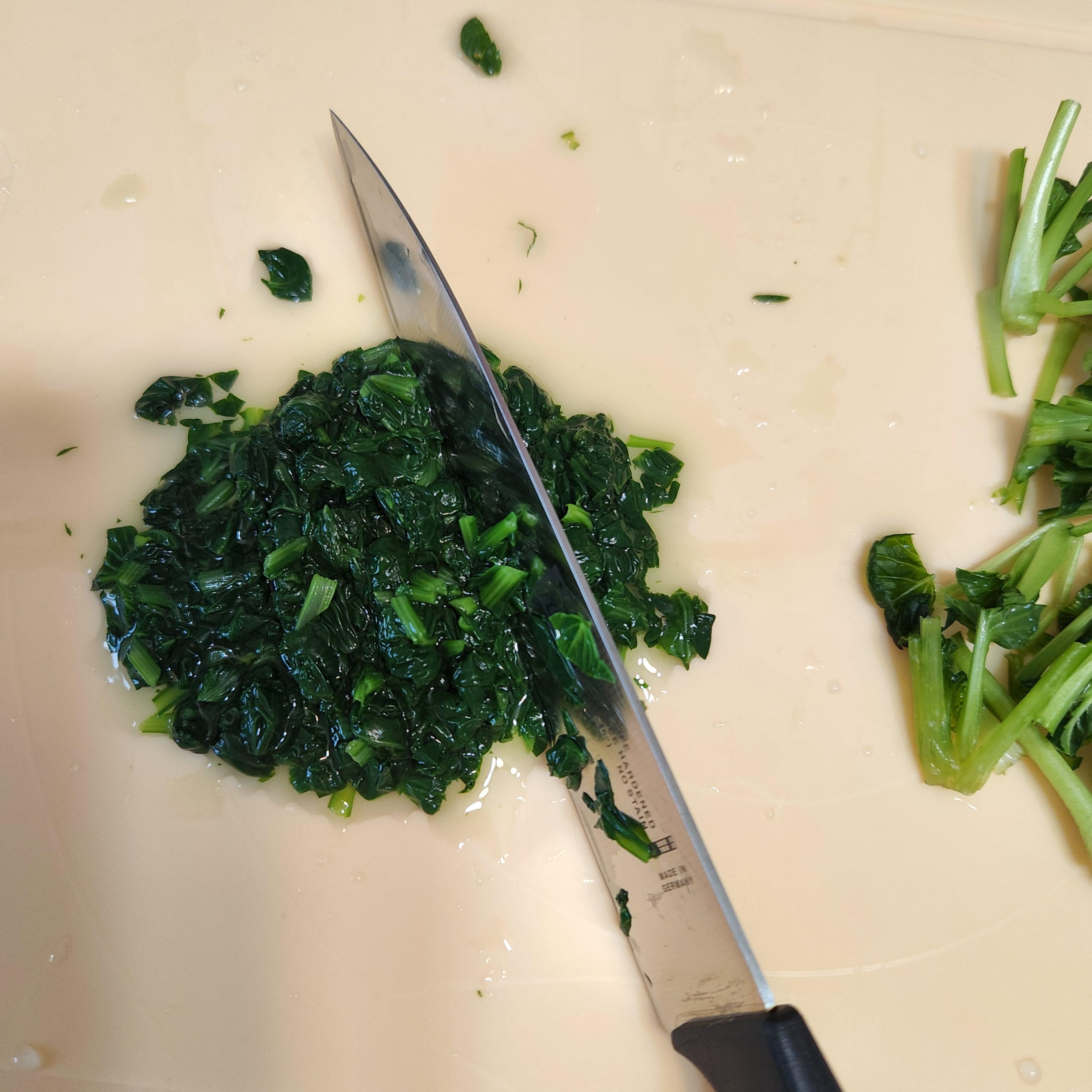 자른 잎은 끓는 물에 넣고 1분 내외로 살짝 데쳐준다.