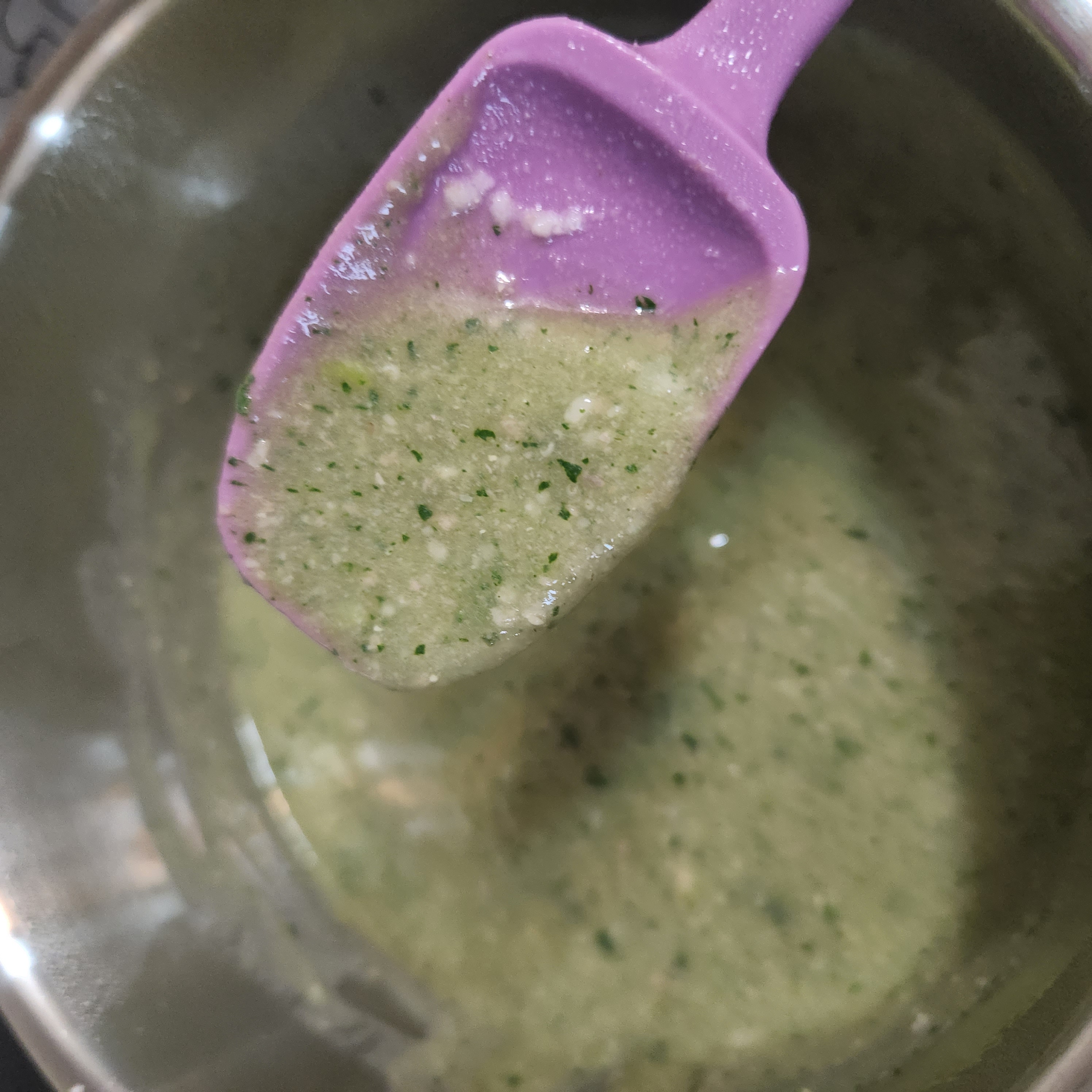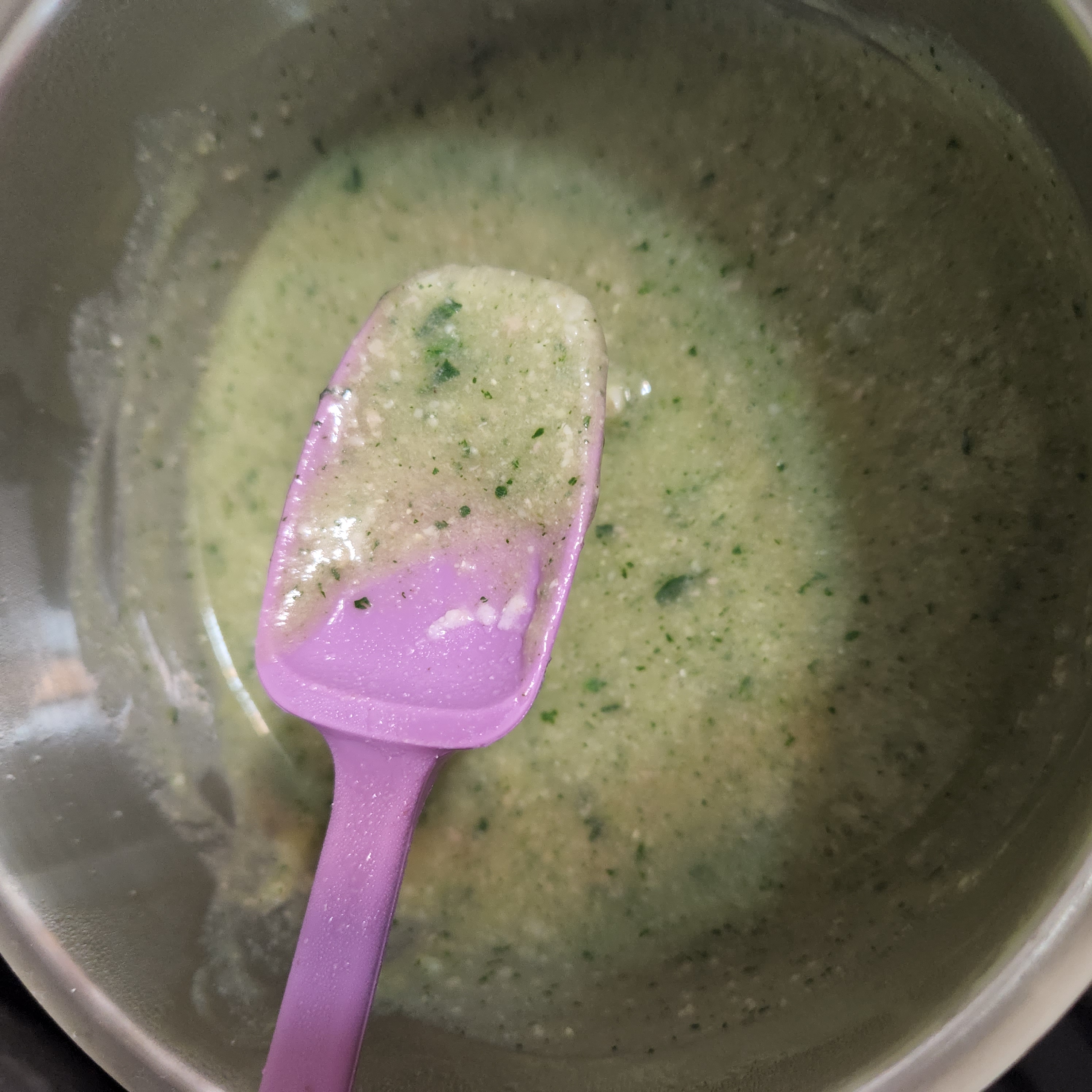 요리스푼으로 젓다가 물을 추가하면서 농도를 아기에 맞게 조절해 준다.