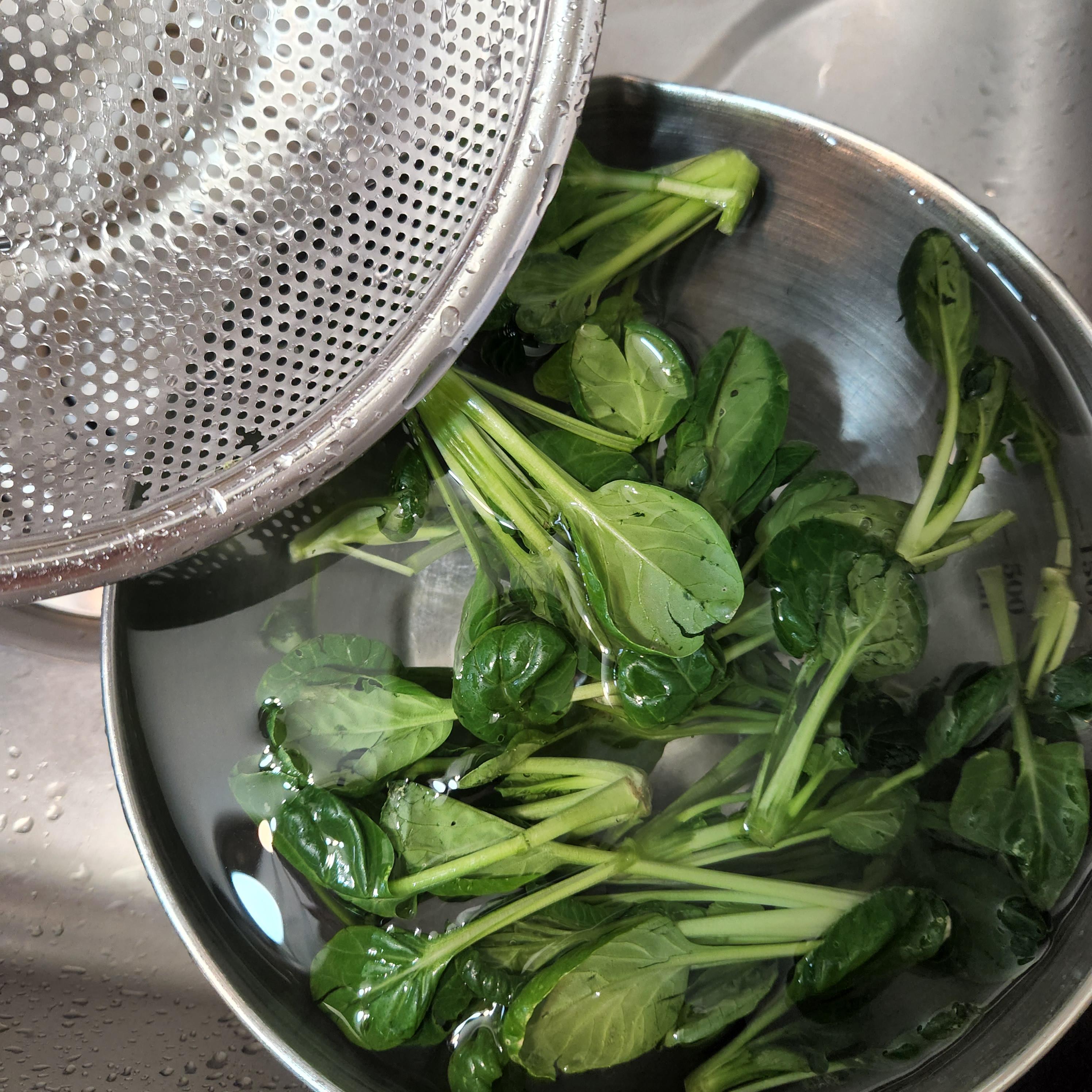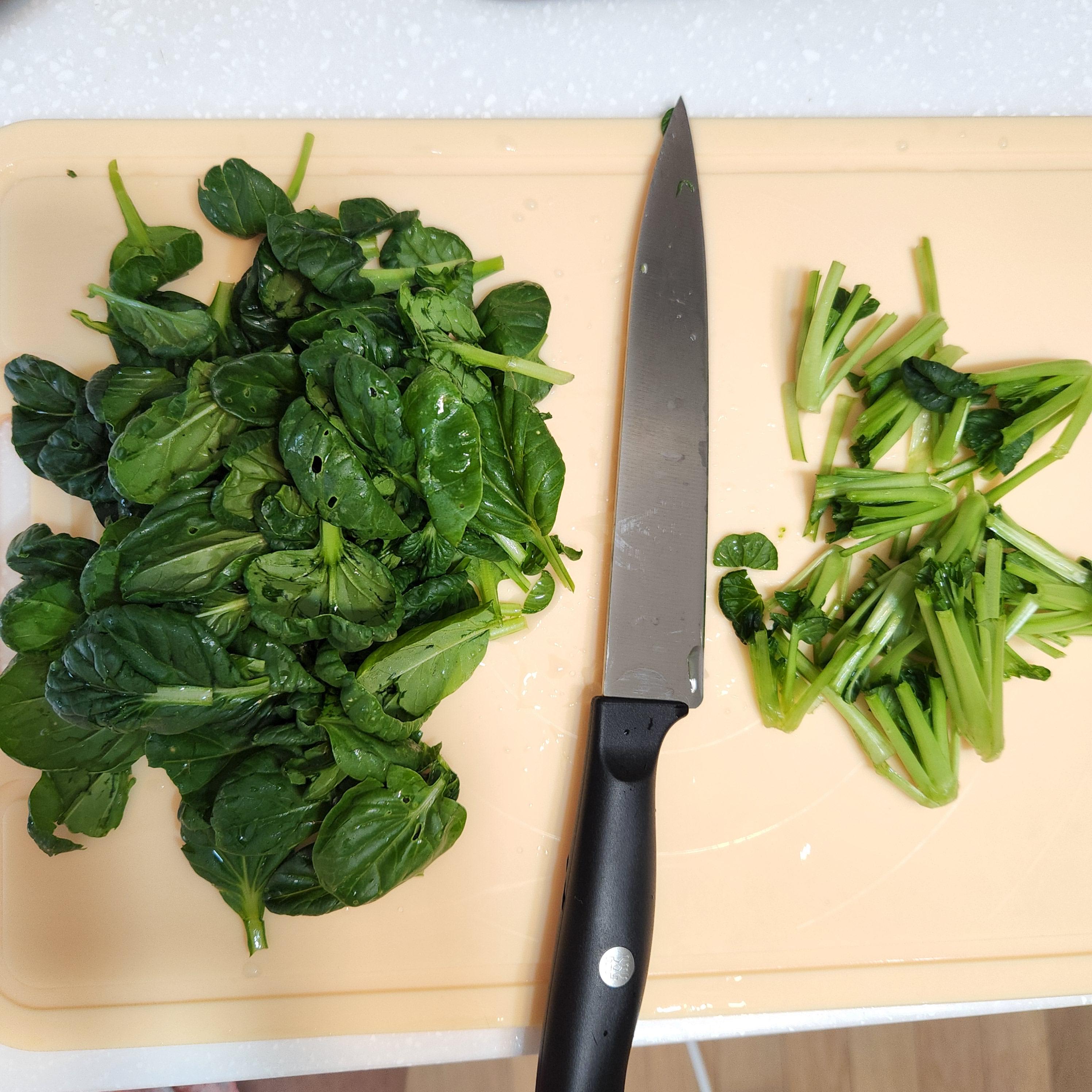 - 질긴 줄기부분은 잘라내고 잎부분만 사용하기