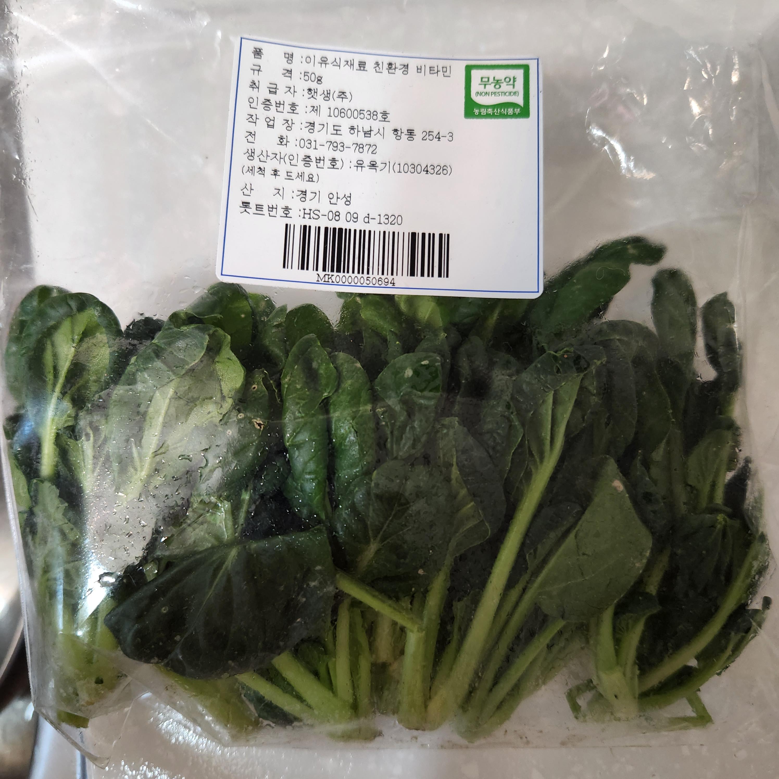 여기 저기 온라인 검색을 하다가 마켓컬리에 이유식재료 친환경 비타민채가 있길래 냉큼 새벽배송으로 주문했다.