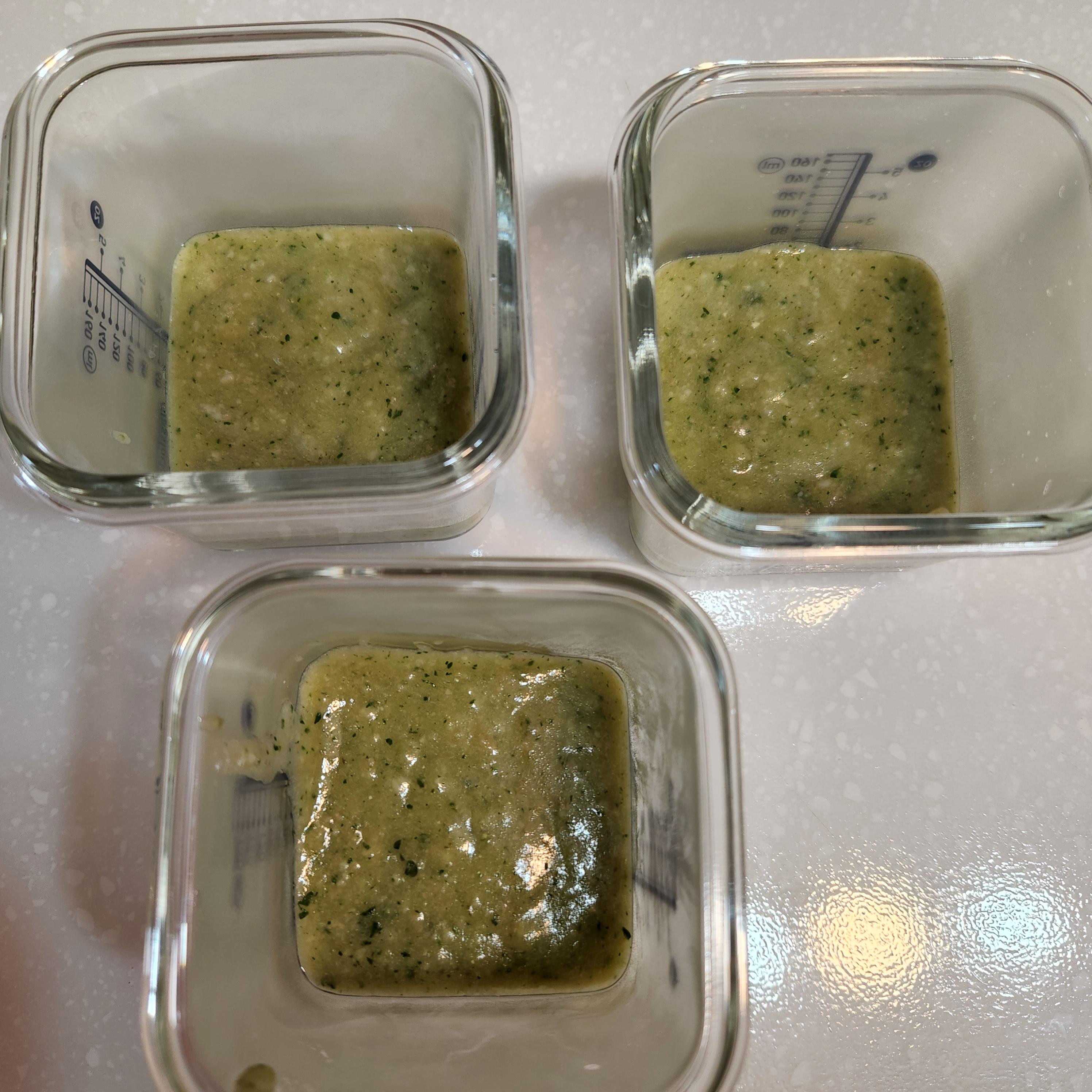 걸쭉해 보이는 이유식은 글라스락 용기에 옮겨 담는다.